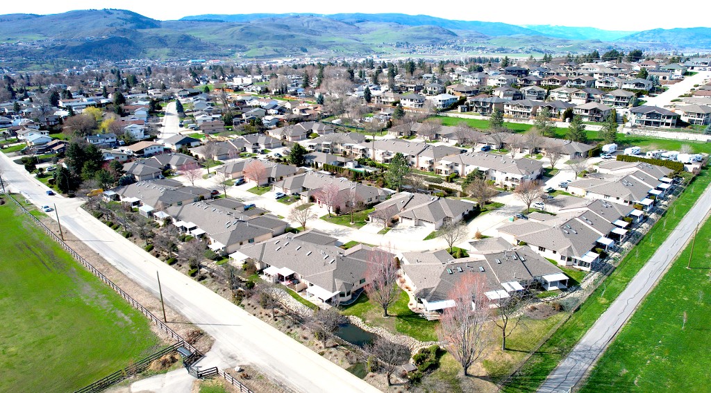 The units in this complex started being built around 1992 and continued until 1994ish, and there are 76 units in the complex with a number of different floor plans ranging from 2 bedroom, 2 bathroom units with single garages running around 1094 sf up to 1484 sf. (plans with main floor family rooms), plus a few units with basements that achieve a square footage up to 2500 sf. The smaller plans include a single car garage while the larger plans have double attached garages.
